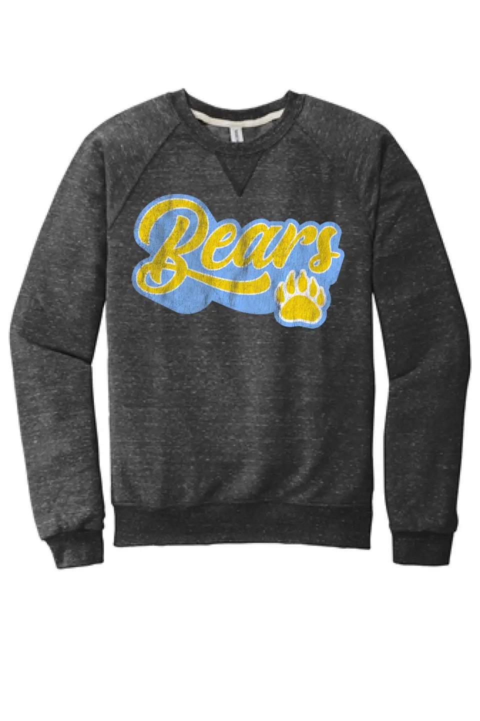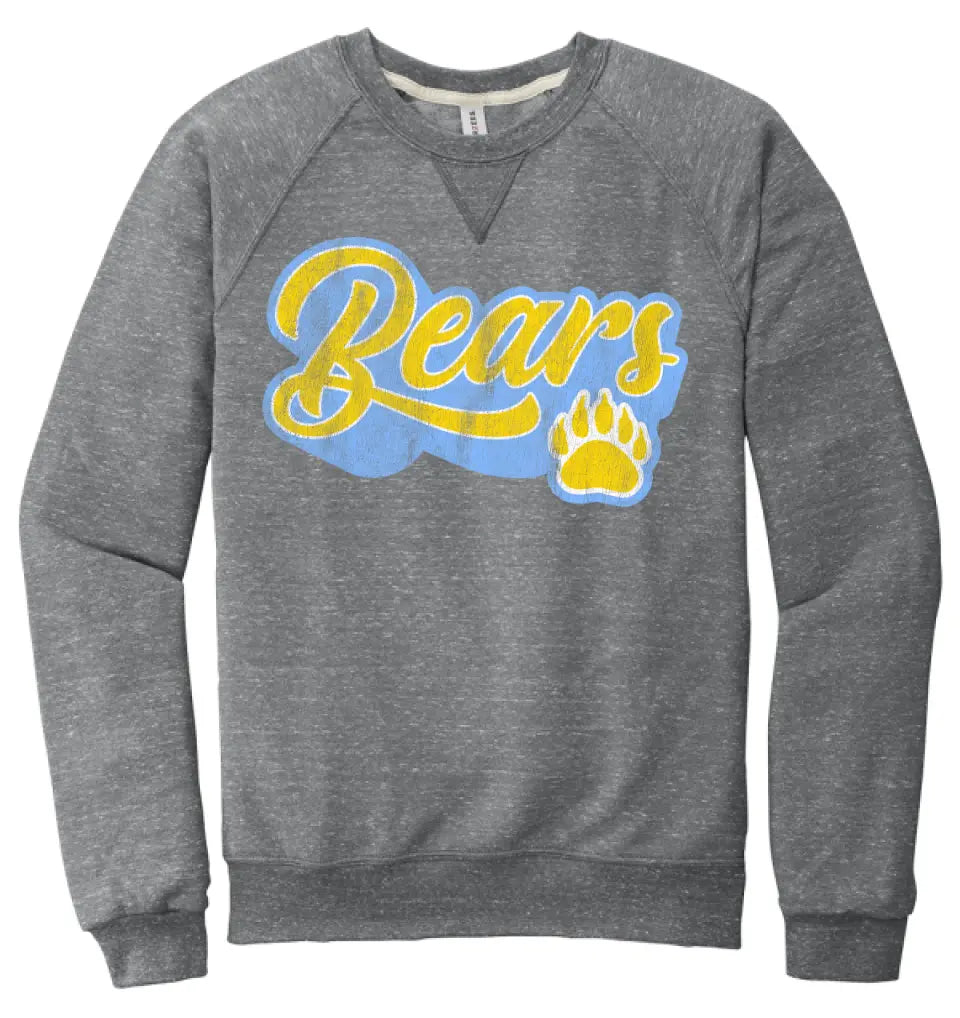 Oak Glen Distressed Script with Paw Jerzees Snow Heather French Terry Raglan Crew