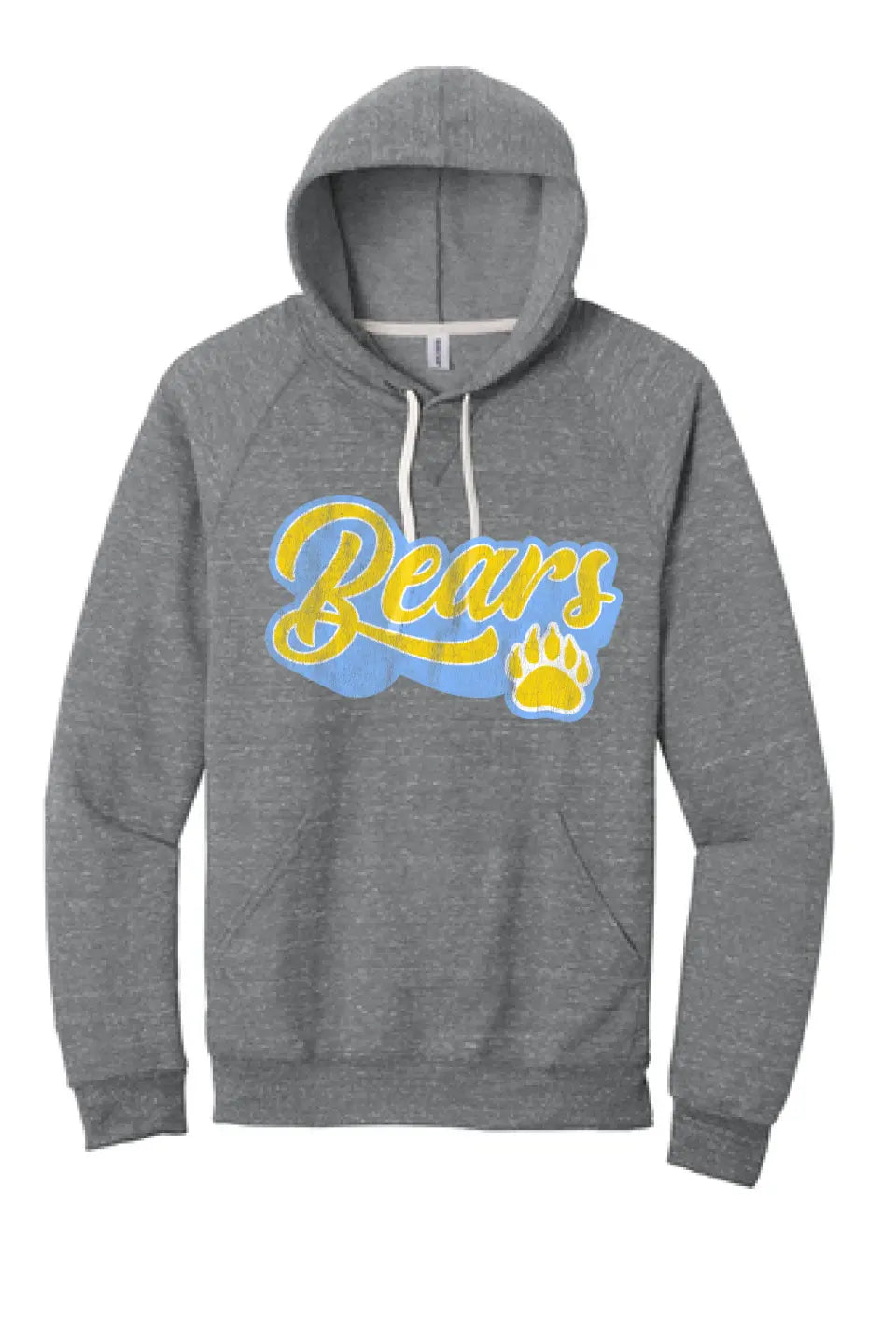 Oak Glen Distressed Script with Paw Snow Heather French Terry Raglan Hoodie