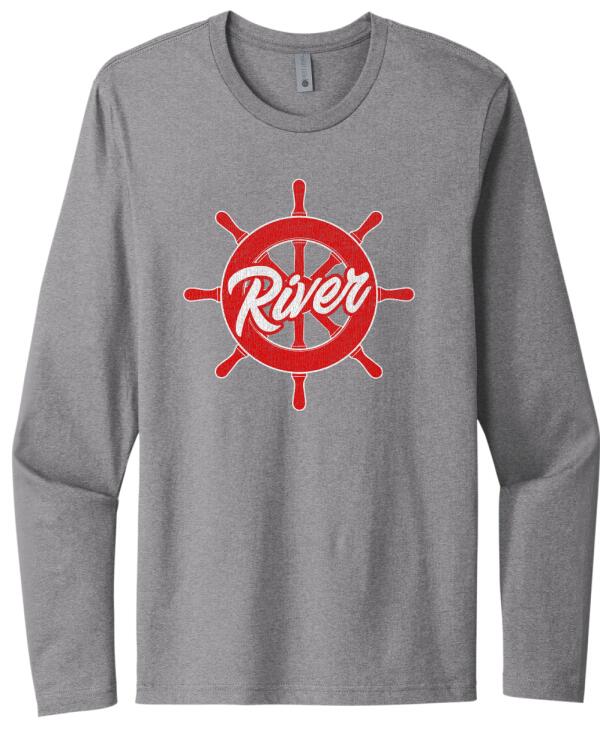 River Distressed Logo Next Level Cotton Long Sleeve Tee