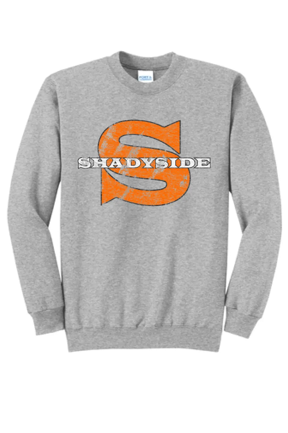 Shadyside Distressed Wide Latin Core Fleece Crewneck Sweatshirt