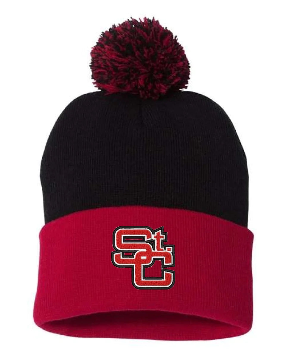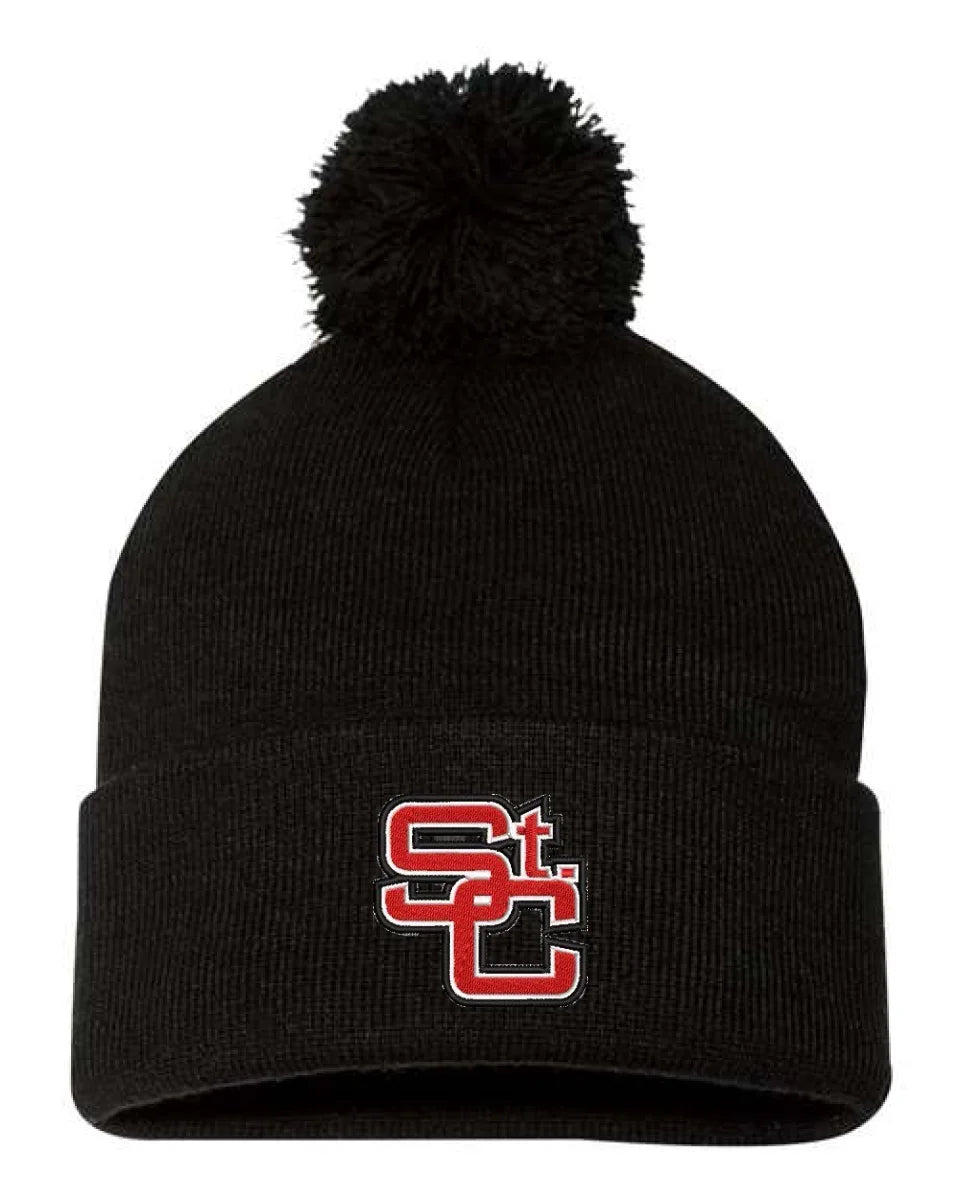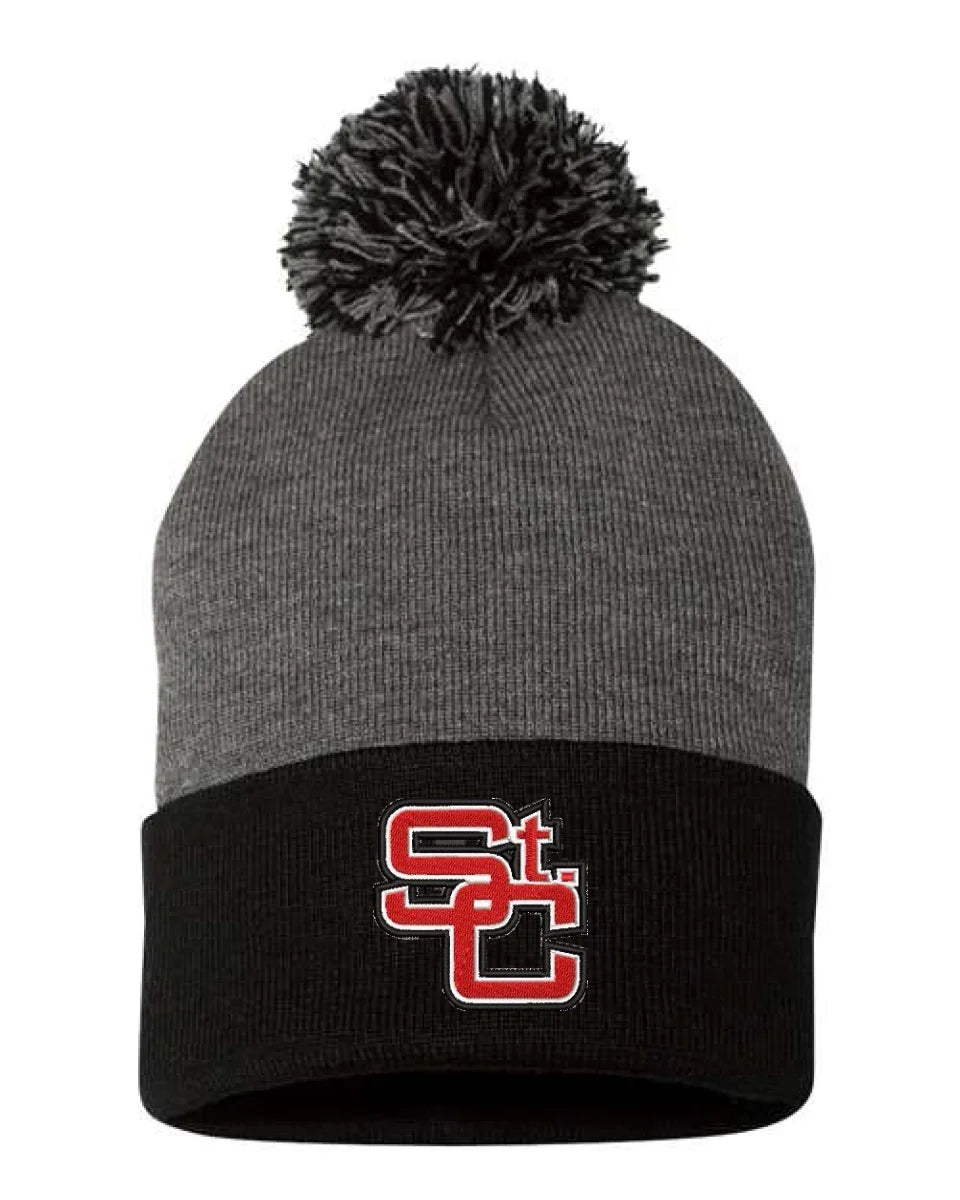 St. Clairsville Embroidery 12" Pom-Pom Cuffed Beanie