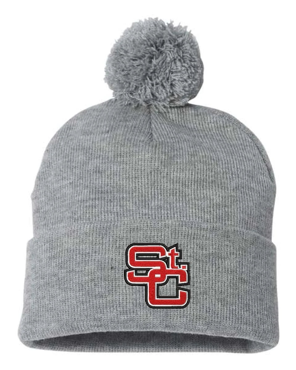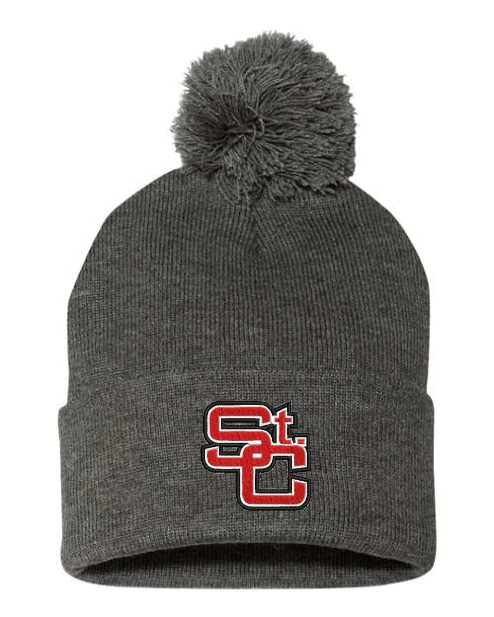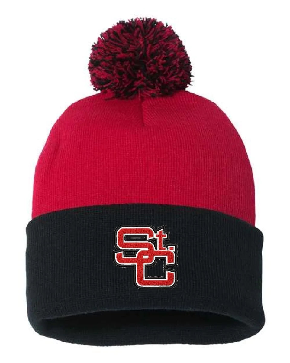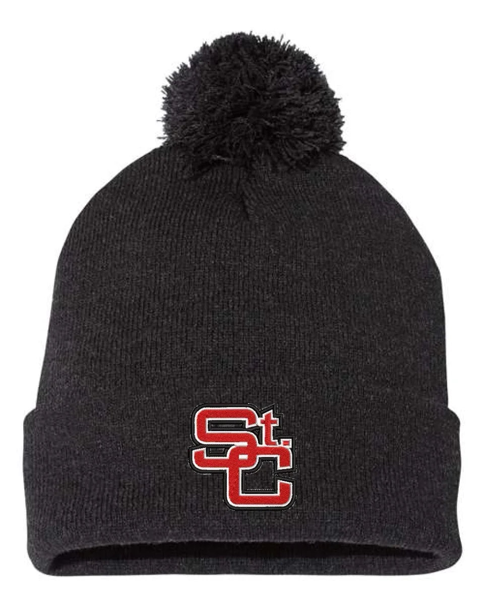 St. Clairsville Embroidery 12" Pom-Pom Cuffed Beanie