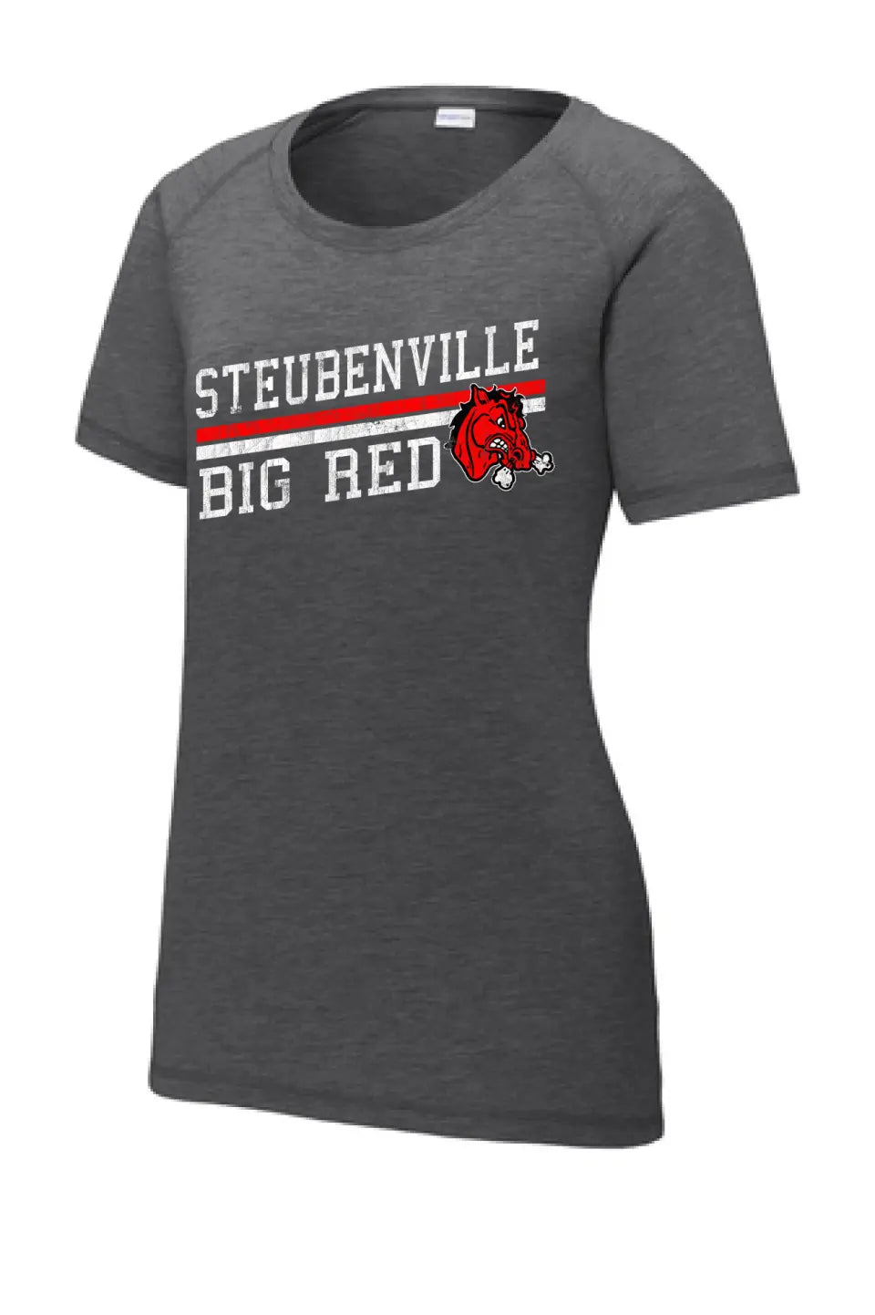 Steubenville Big Red Distressed Elevate Ladies PosiCharge Tri-Blend Wicking Scoop Neck Raglan Tee