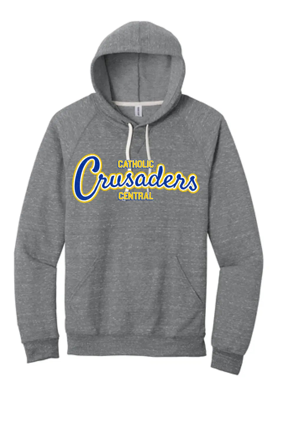 Steubenville Catholic Central Distressed Crusaders Script Jerzees Snow Heather French Terry Raglan Hoodie