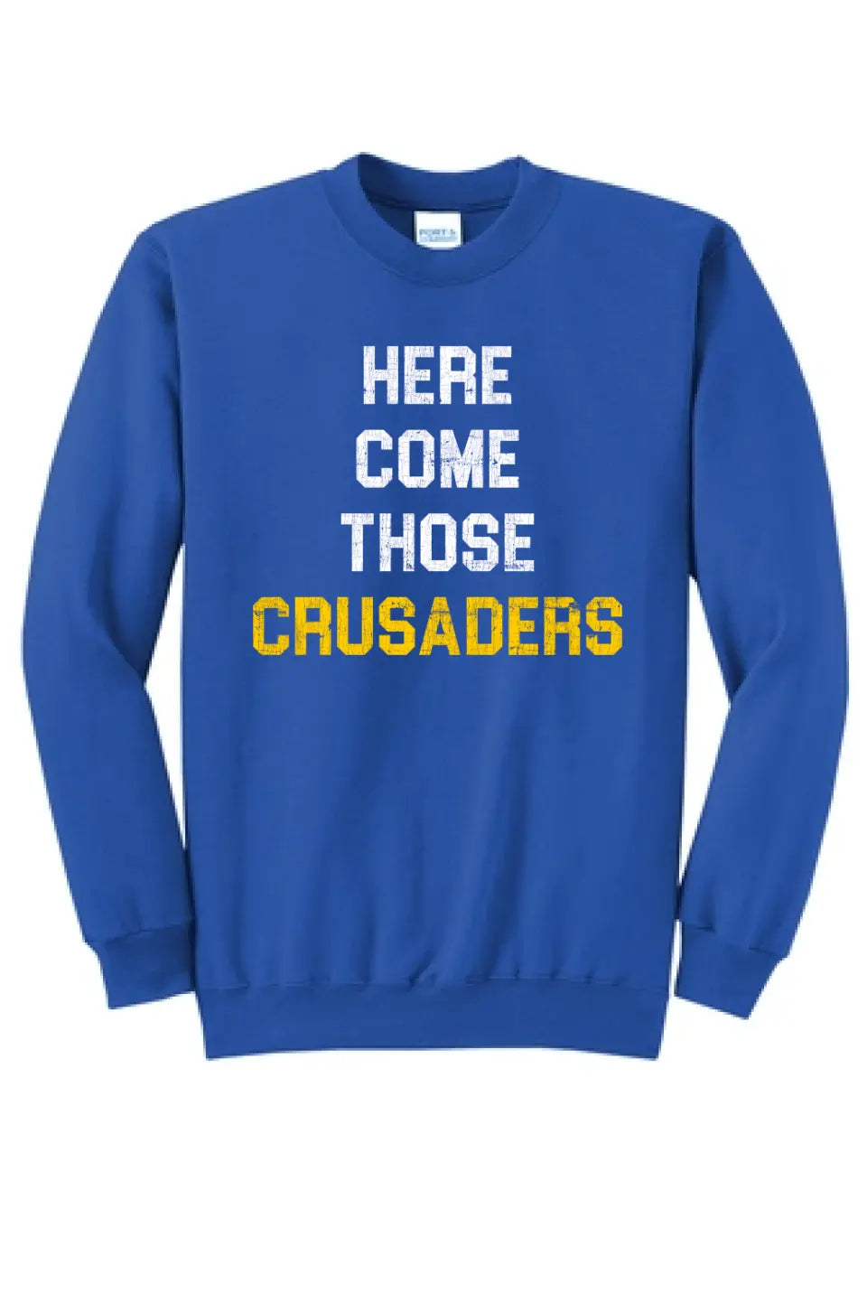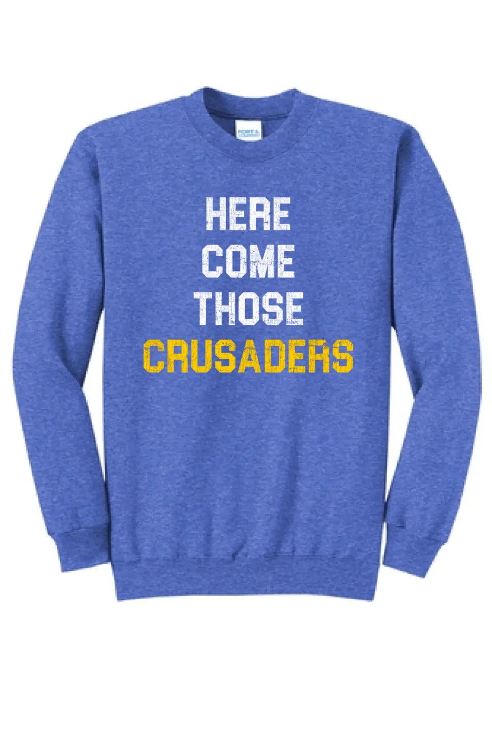 Steubenville Catholic Central Distressed Here Come Those Crusaders Core Fleece Crewneck Sweatshirt